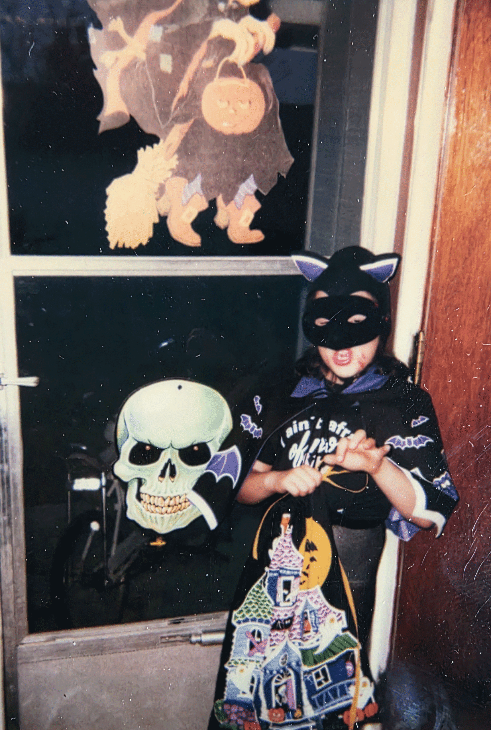 October is a state of mind for me. When I think of Halloween time the everyday becomes magical. Fog coming from the nearby creek unfurls over the hill like ghostly whispers. Bare tree branches become bony fingers scraping on the window glass and maple leaves falling from a front yard tree create a pile of orange stars to jump in and scatter.